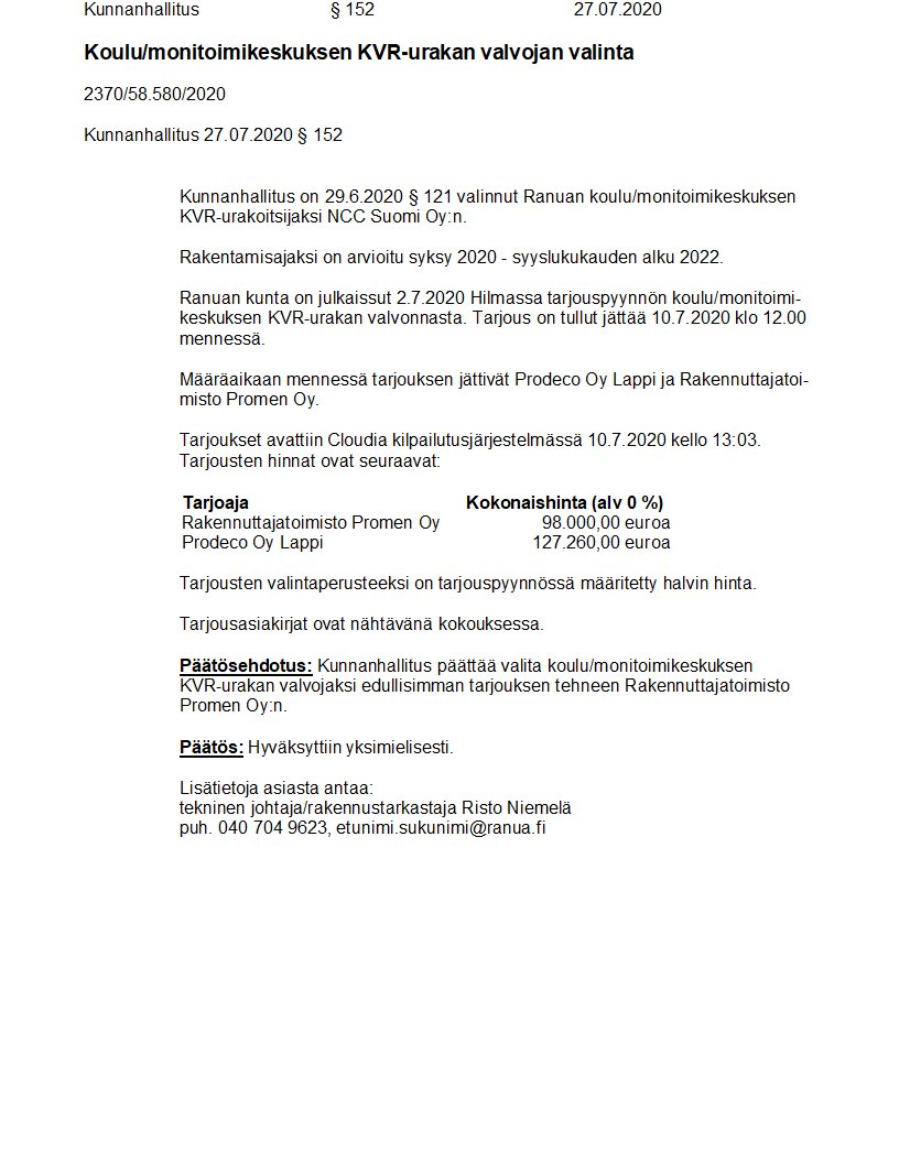 Pöytäkirja 27.07.2020/Pykälä 152