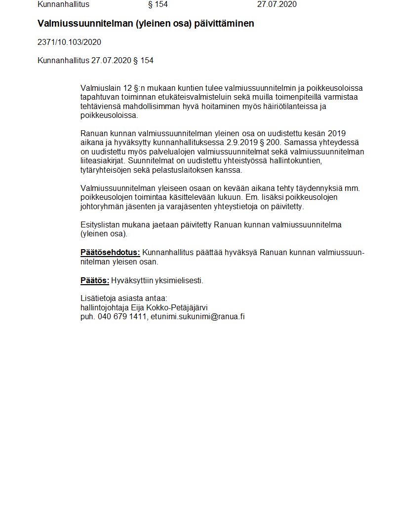 Pöytäkirja 27.07.2020/Pykälä 154