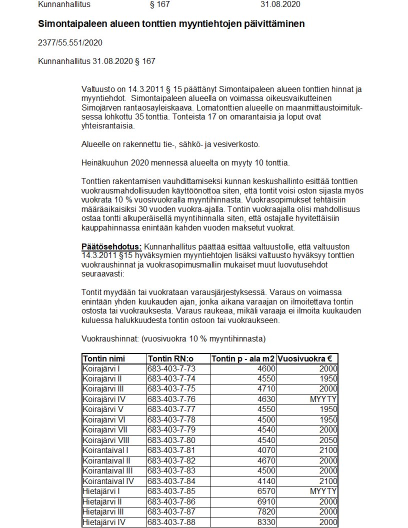 Pöytäkirja 31.08.2020/Pykälä 167