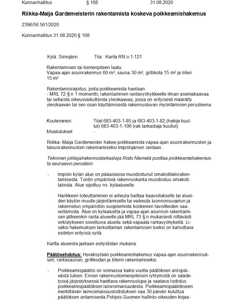 Pöytäkirja 31.08.2020/Pykälä 168