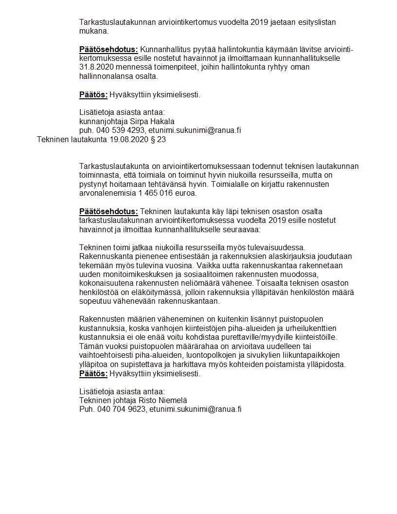 Pöytäkirja 19.08.2020/Pykälä 23