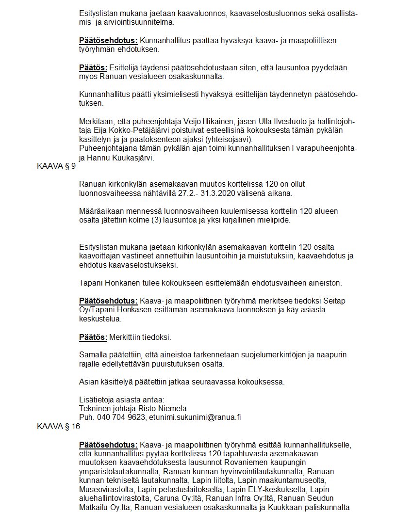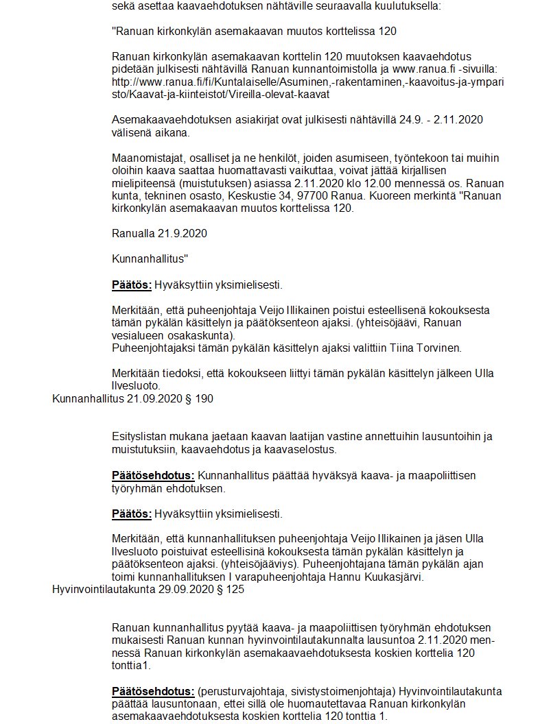 Pöytäkirja 29.09.2020/Pykälä 125