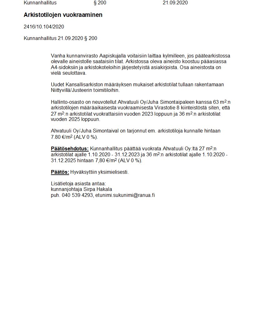 Pöytäkirja 21.09.2020/Pykälä 200