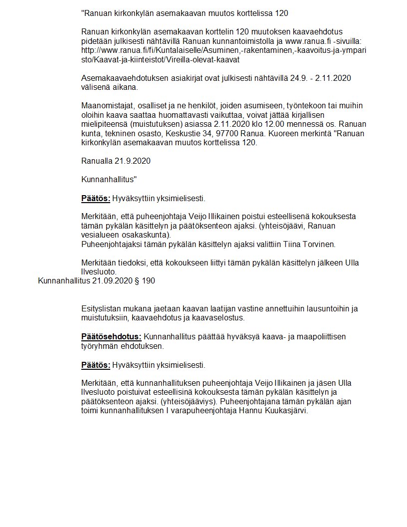 Pöytäkirja 21.09.2020/Pykälä 190