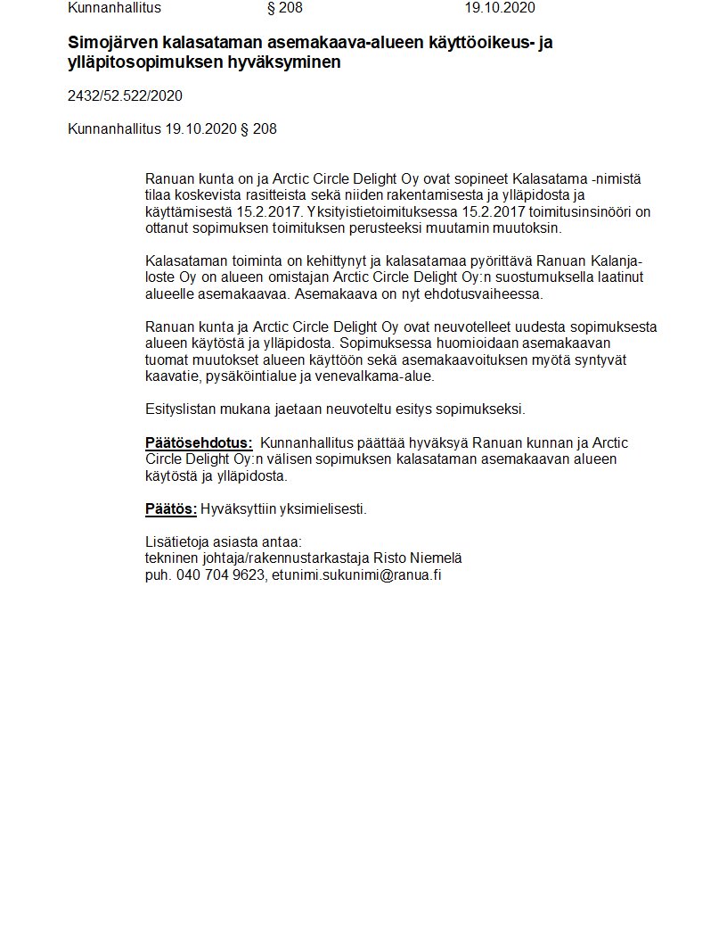 Pöytäkirja 19.10.2020/Pykälä 208
