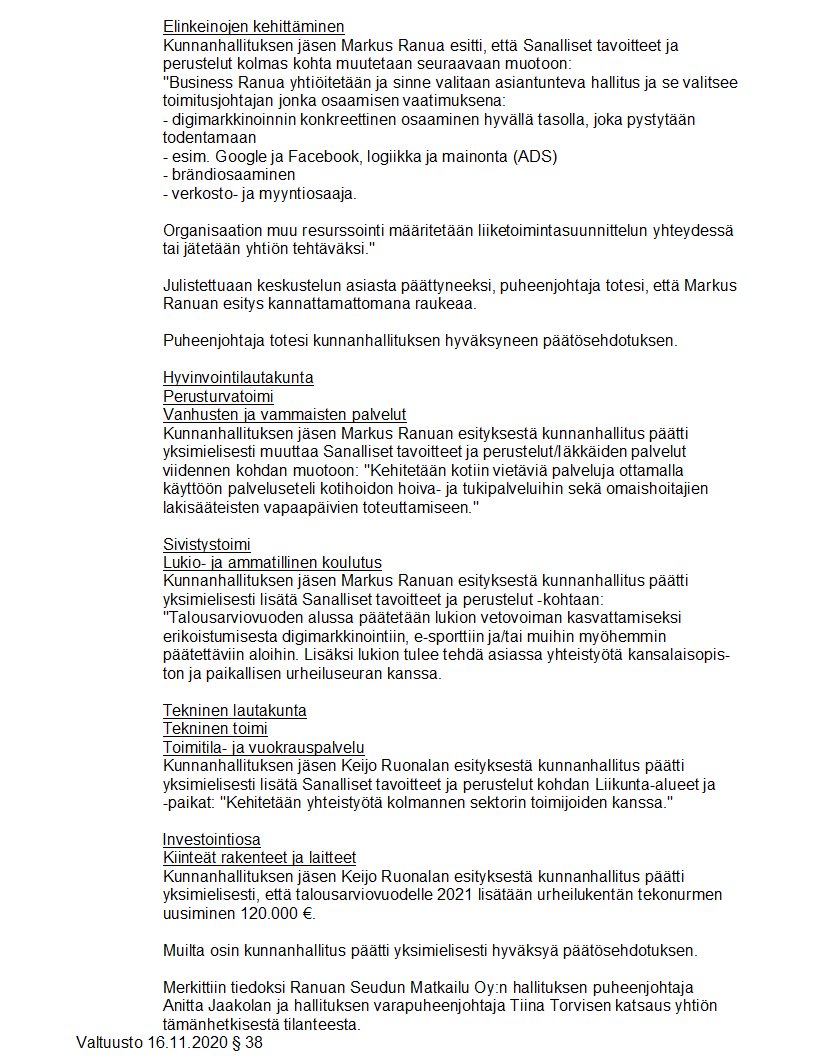 Pöytäkirja 16.11.2020/Pykälä 38