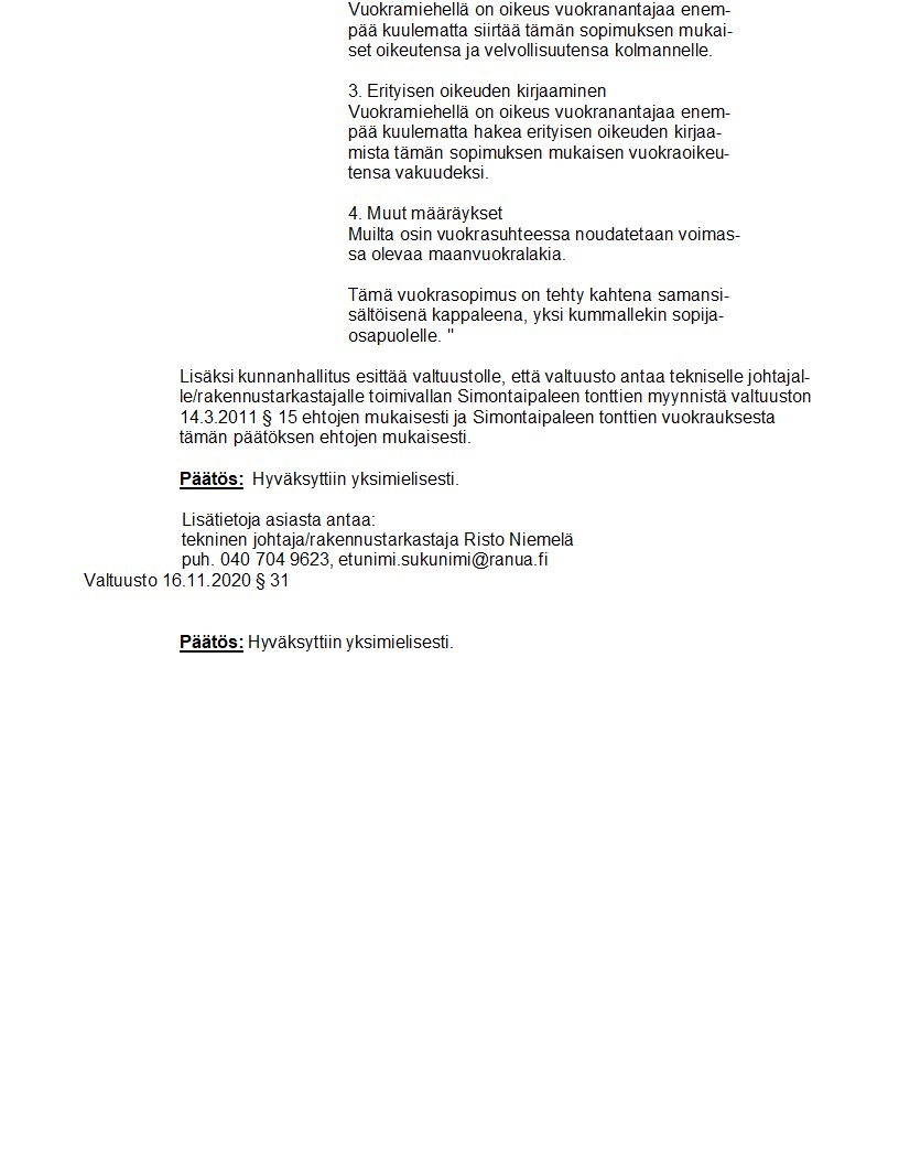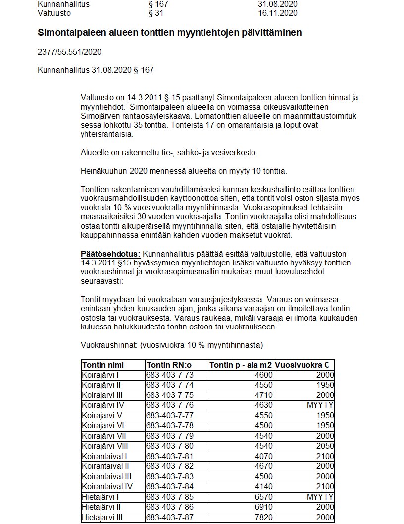 Pöytäkirja 16.11.2020/Pykälä 31