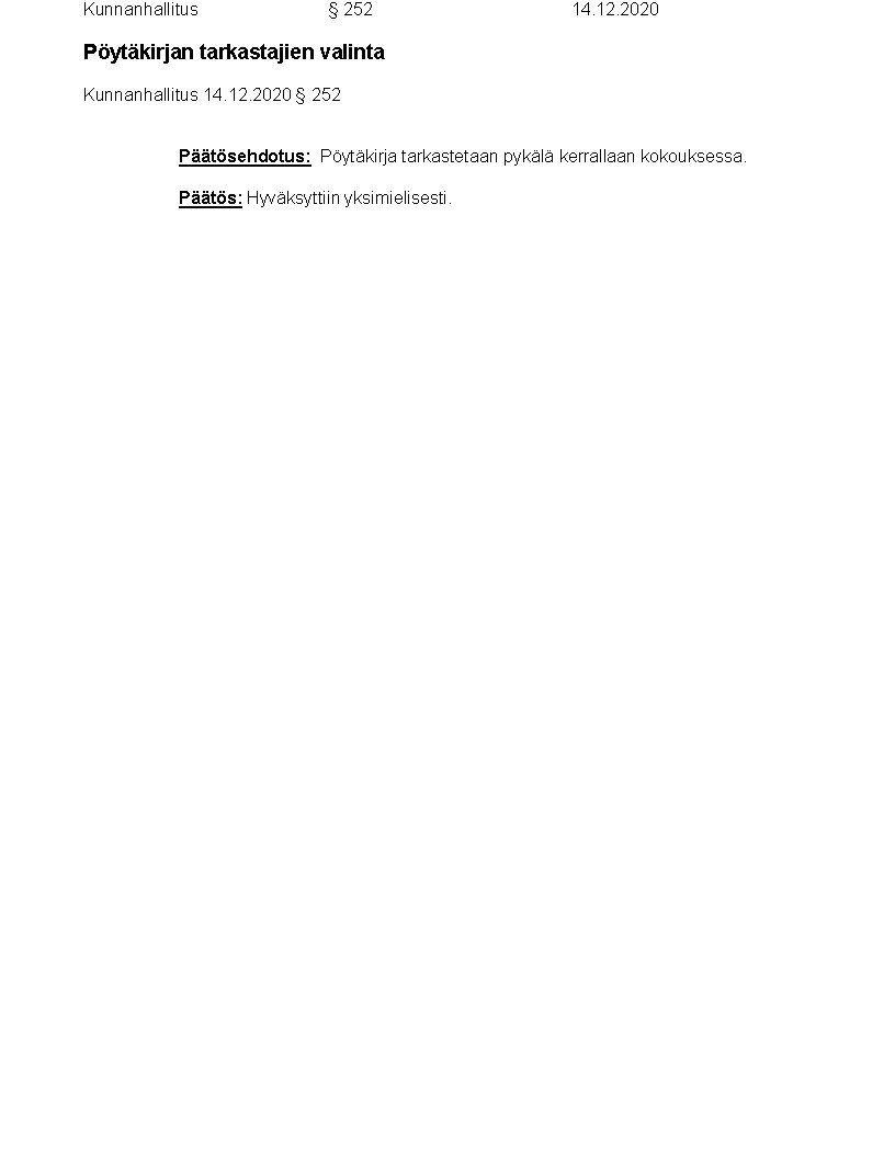 Pöytäkirja 14.12.2020/Pykälä 252
