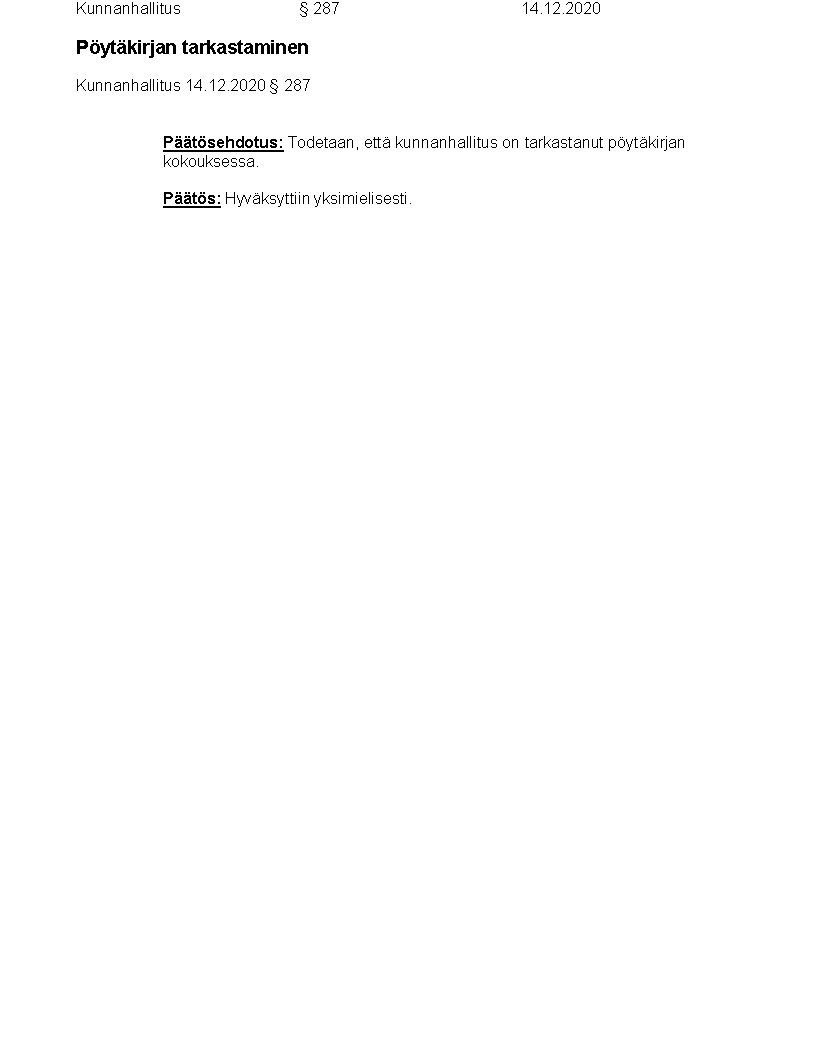 Pöytäkirja 14.12.2020/Pykälä 287