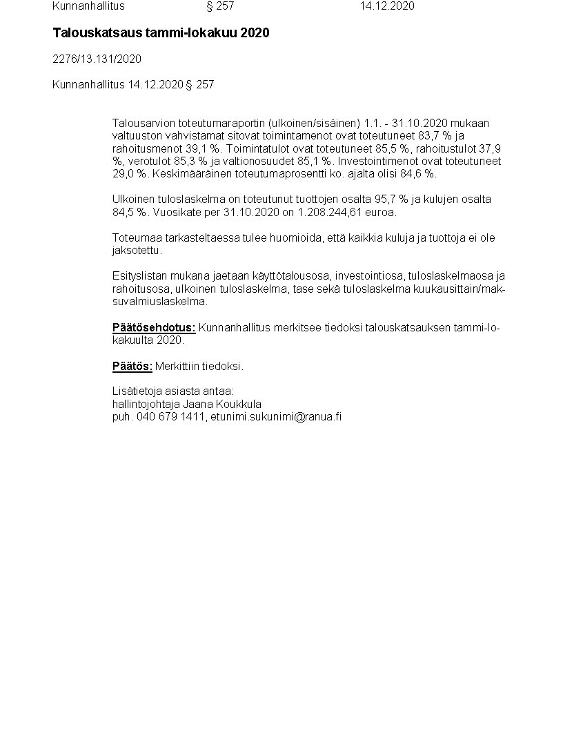 Pöytäkirja 14.12.2020/Pykälä 257