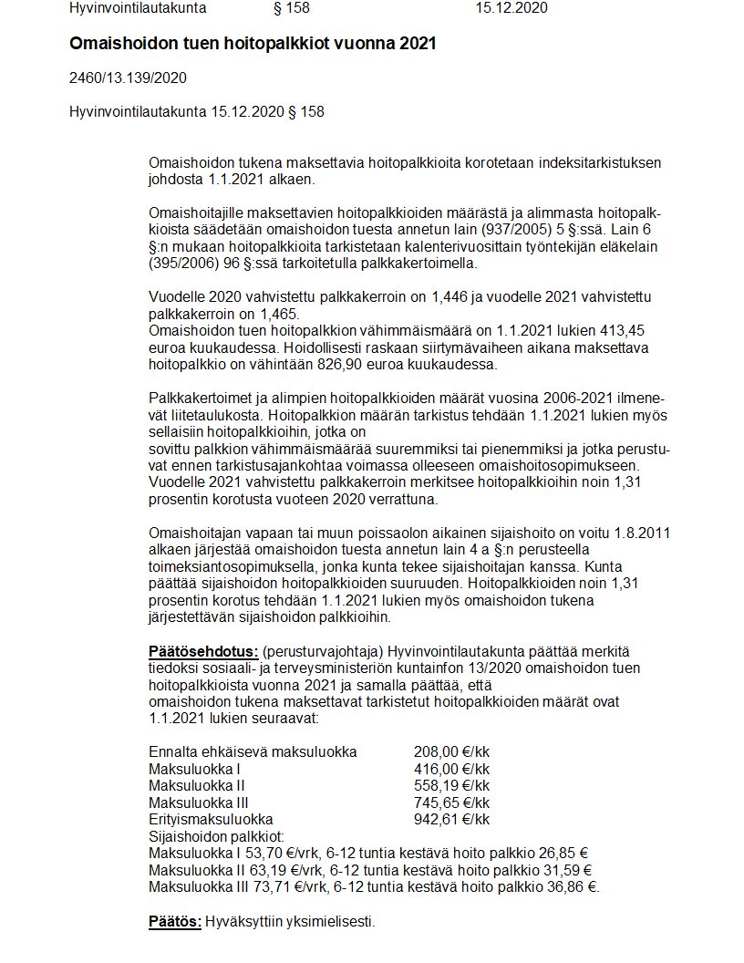 Pöytäkirja 15.12.2020/Pykälä 158