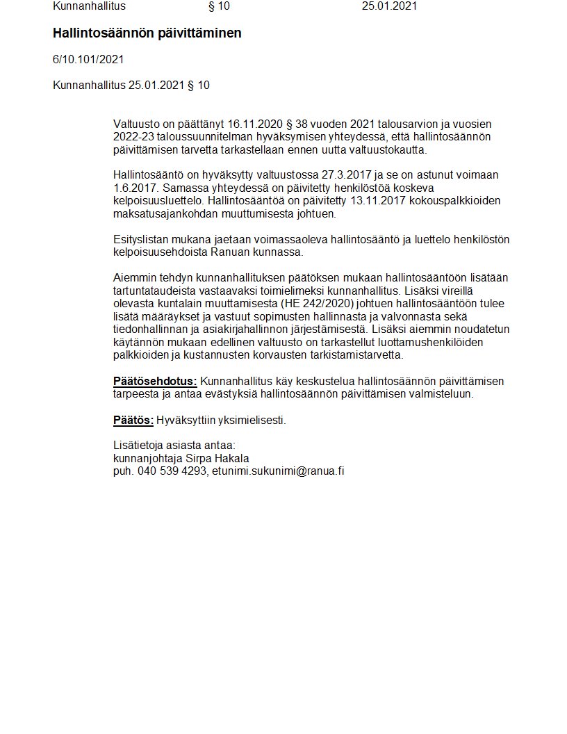 Pöytäkirja 25.01.2021/Pykälä 10