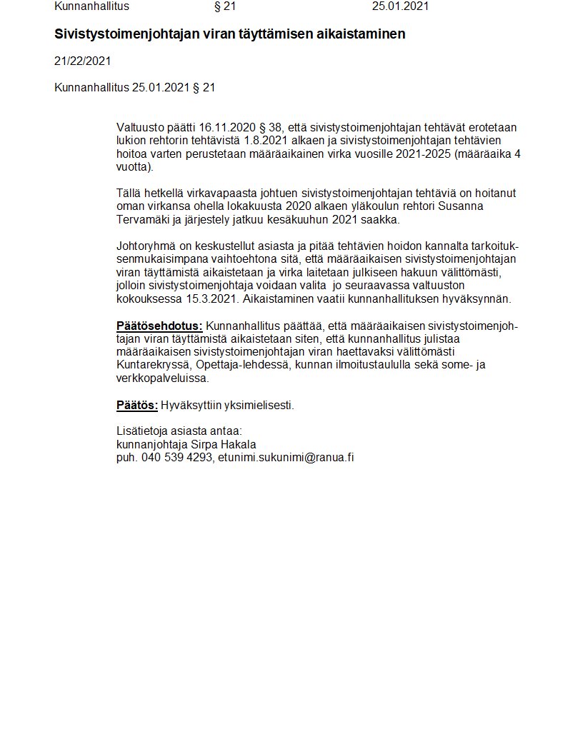 Pöytäkirja 25.01.2021/Pykälä 21