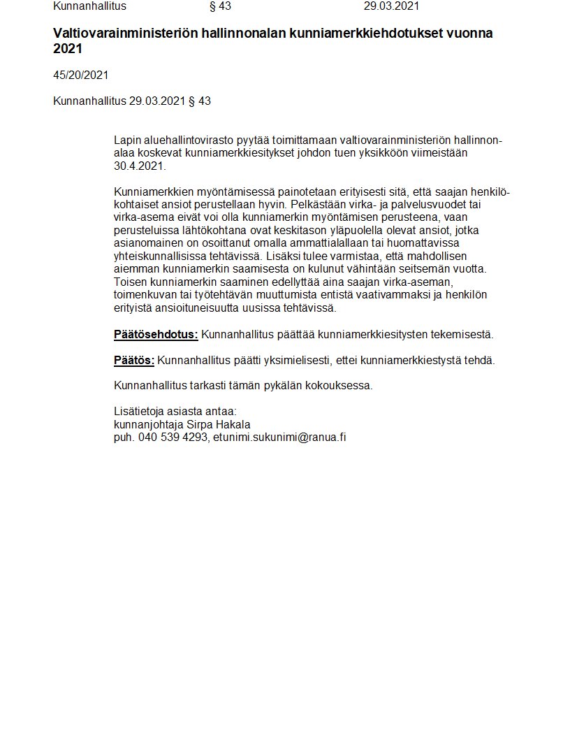 Pöytäkirja 29.03.2021/Pykälä 43