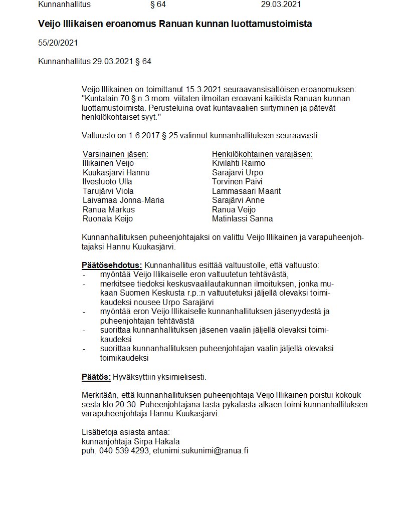 Pöytäkirja 29.03.2021/Pykälä 64