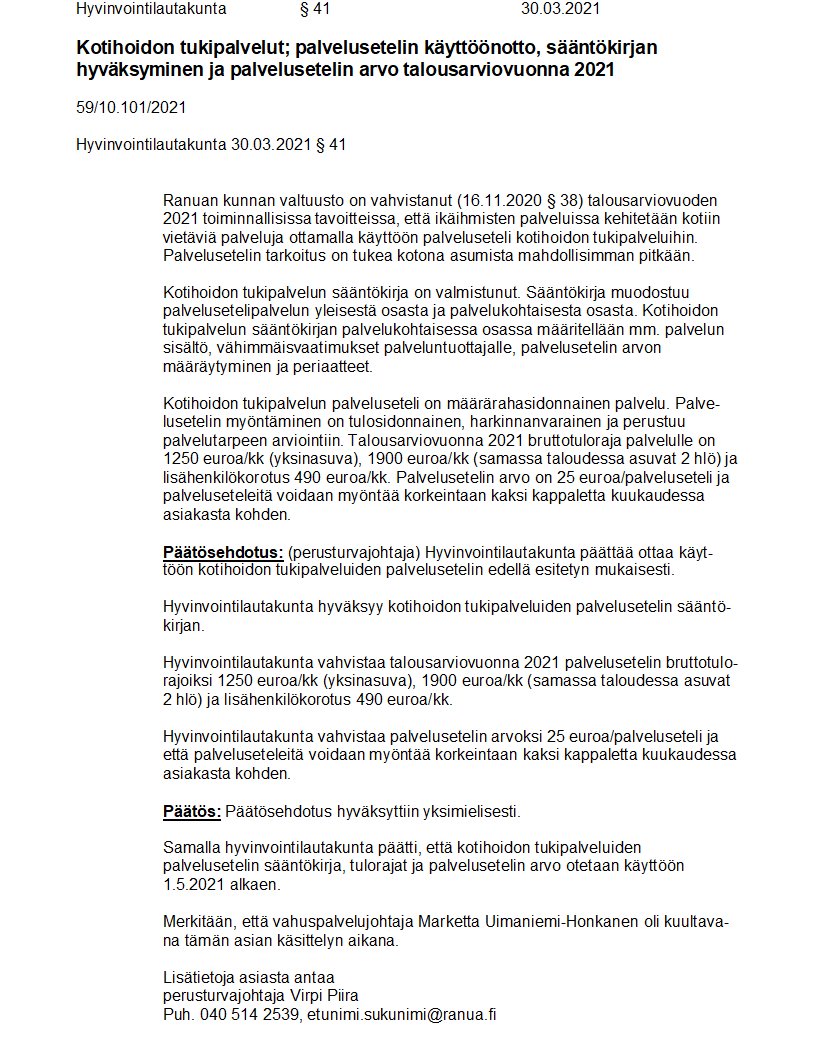 Pöytäkirja 30.03.2021/Pykälä 41