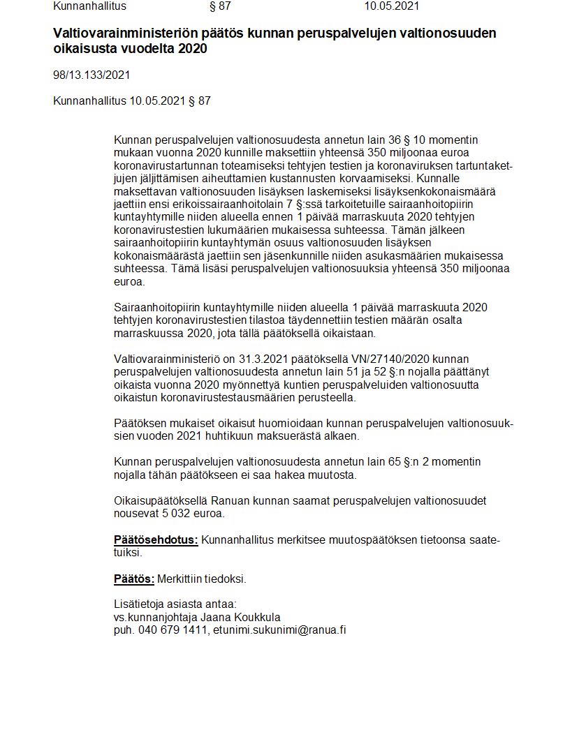 Pöytäkirja 10.05.2021/Pykälä 87