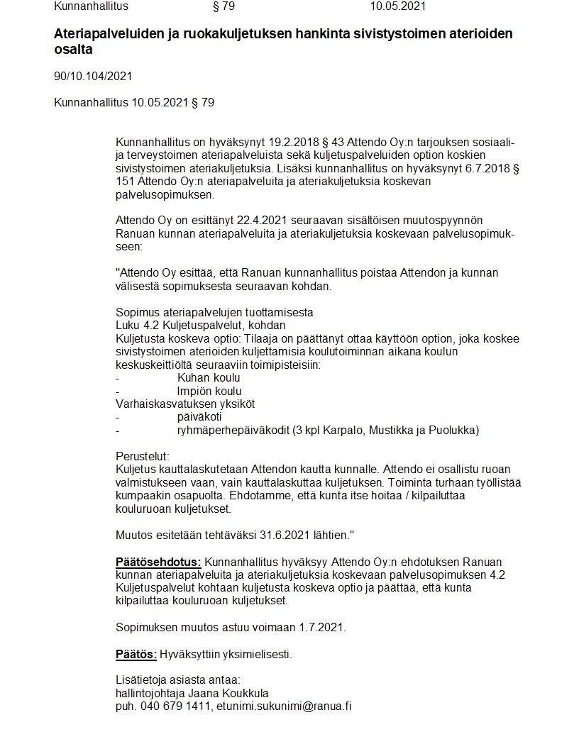 Pöytäkirja 10.05.2021/Pykälä 79