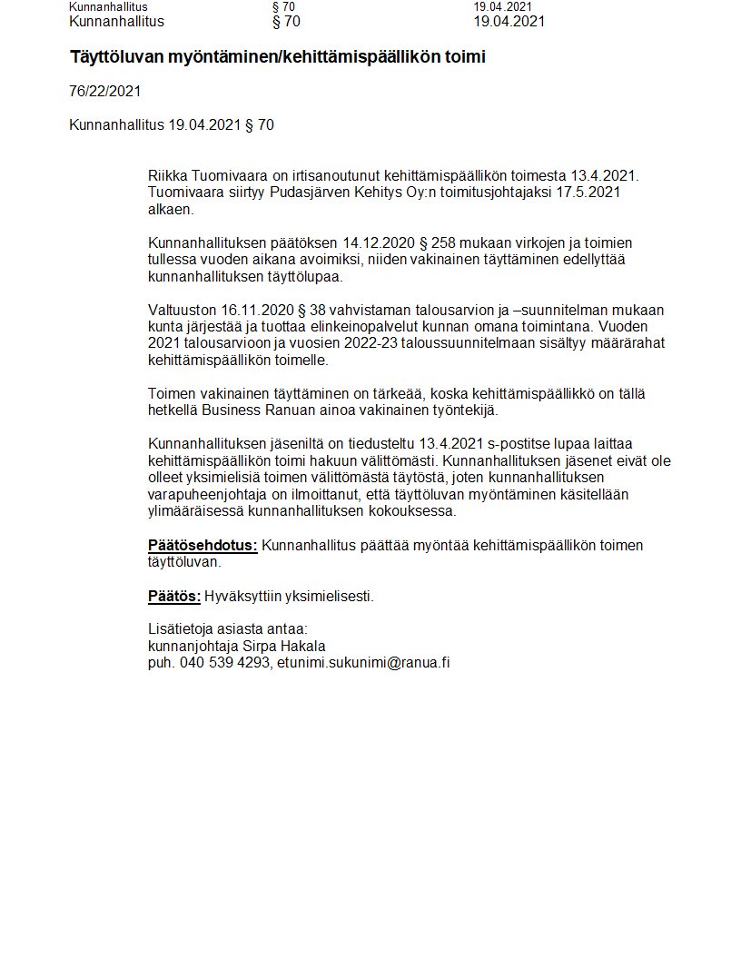 Pöytäkirja 19.04.2021/Pykälä 70