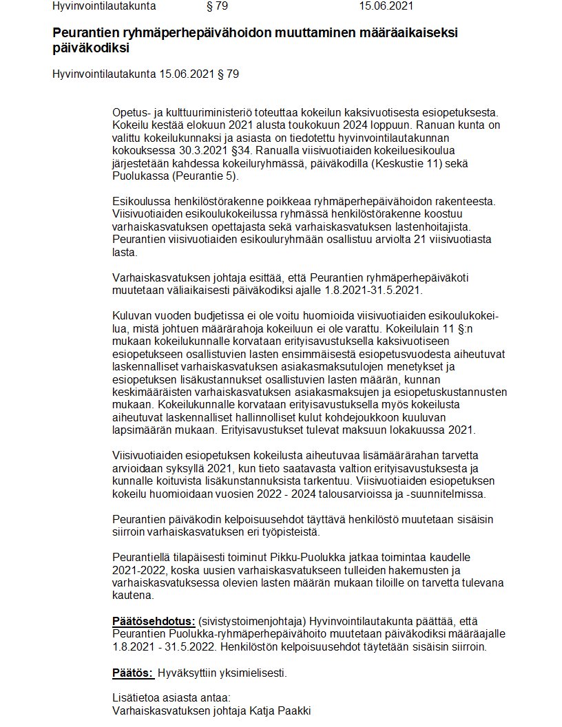 Pöytäkirja 15.06.2021/Pykälä 79
