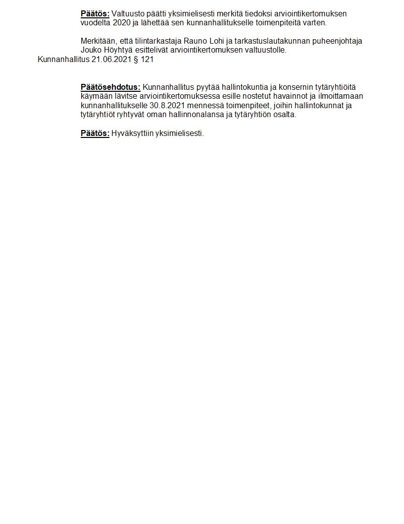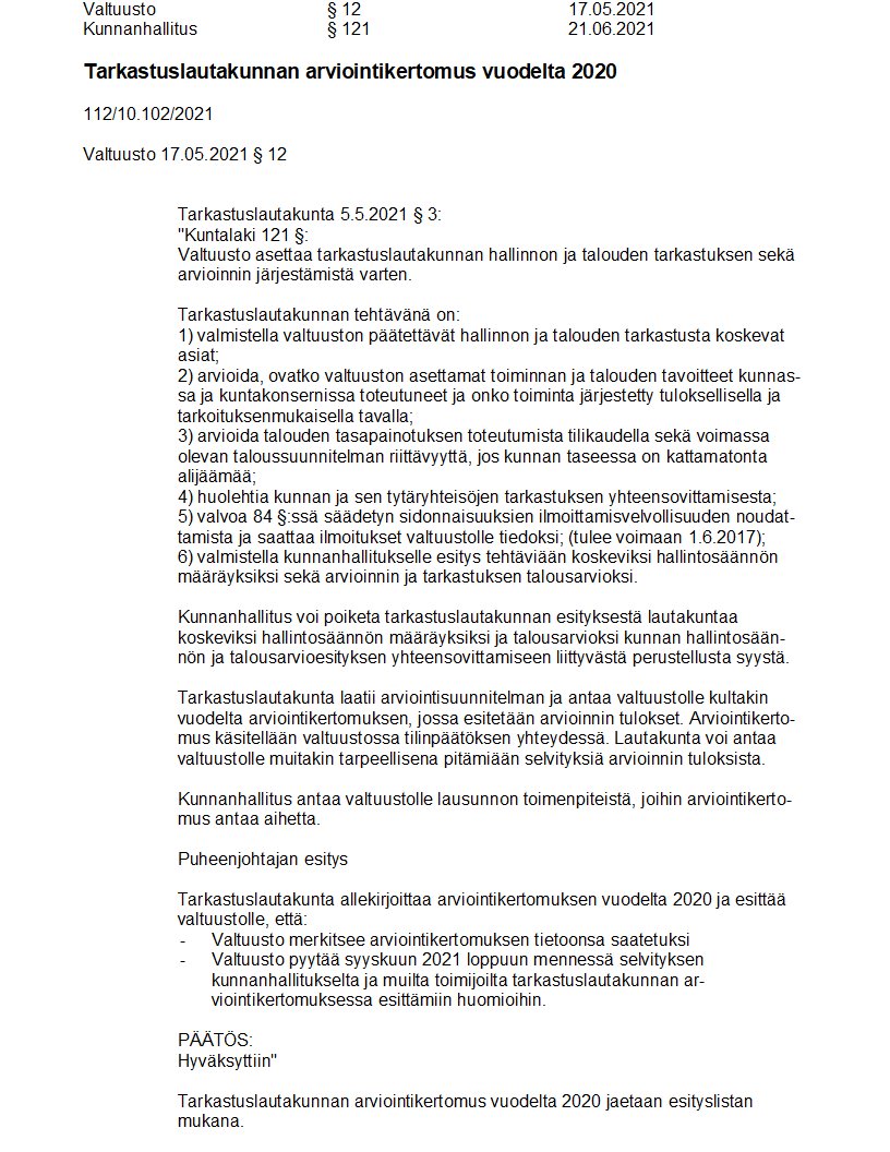 Pöytäkirja 21.06.2021/Pykälä 121