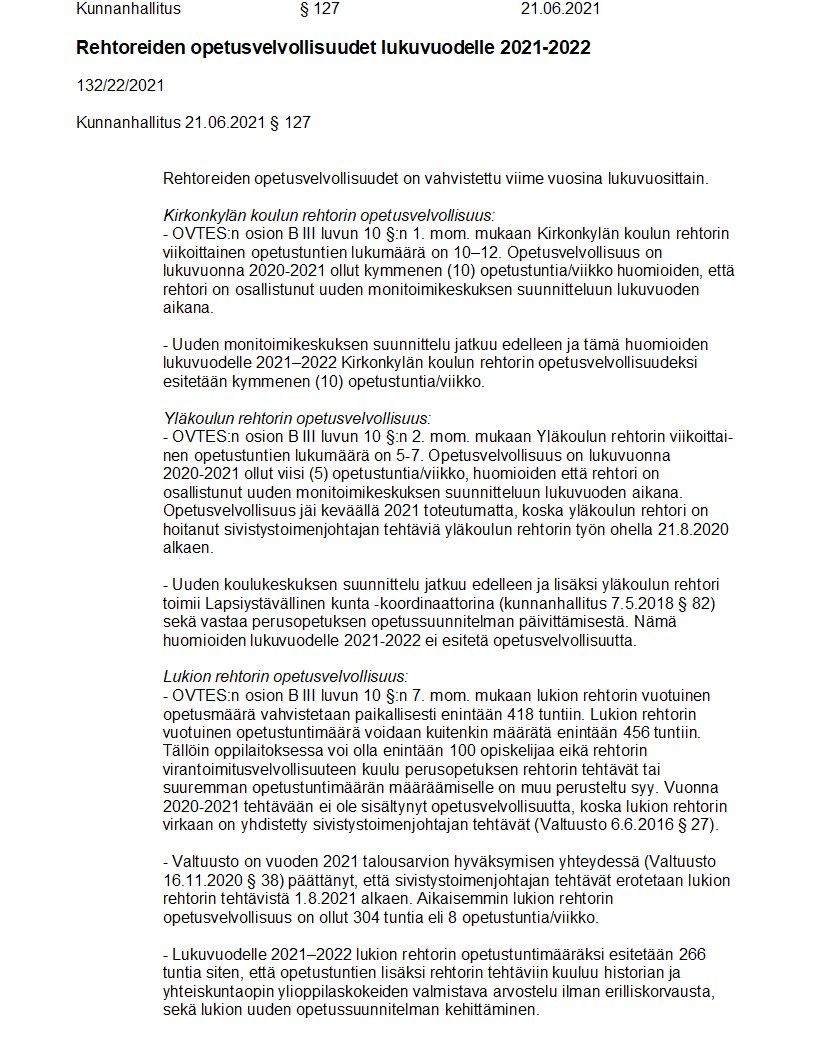 Pöytäkirja 21.06.2021/Pykälä 127