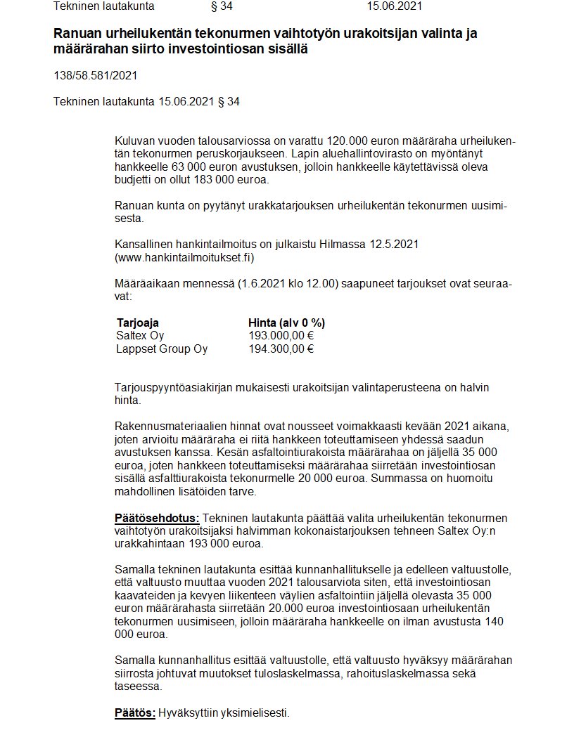 Pöytäkirja 15.06.2021/Pykälä 34