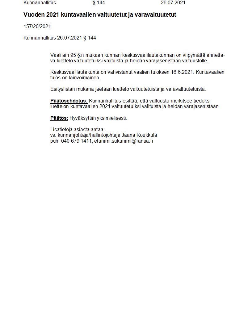Pöytäkirja 26.07.2021/Pykälä 144