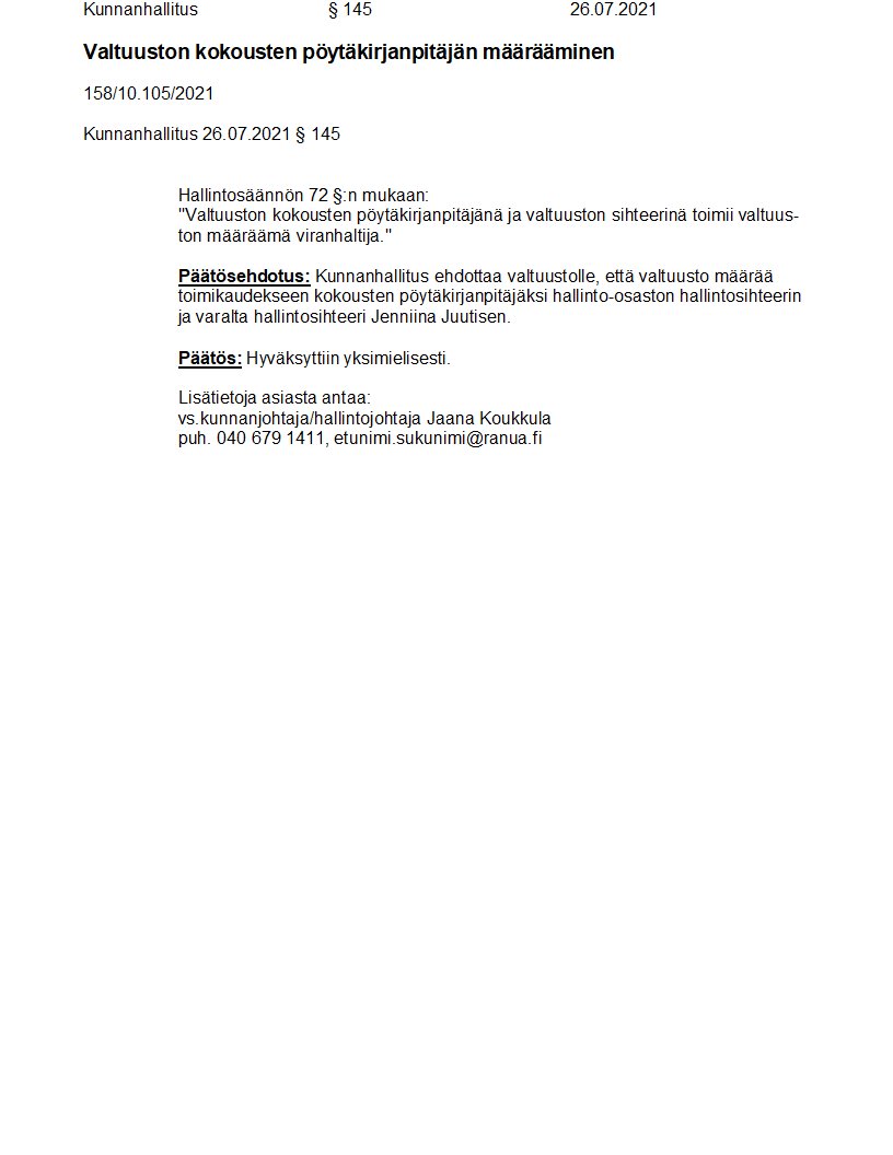 Pöytäkirja 26.07.2021/Pykälä 145