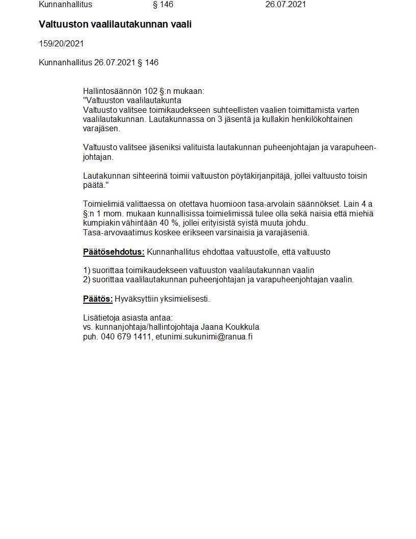 Pöytäkirja 26.07.2021/Pykälä 146