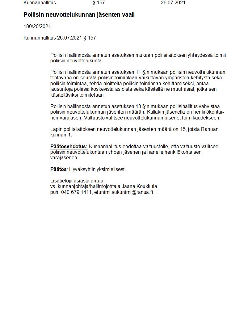 Pöytäkirja 26.07.2021/Pykälä 157