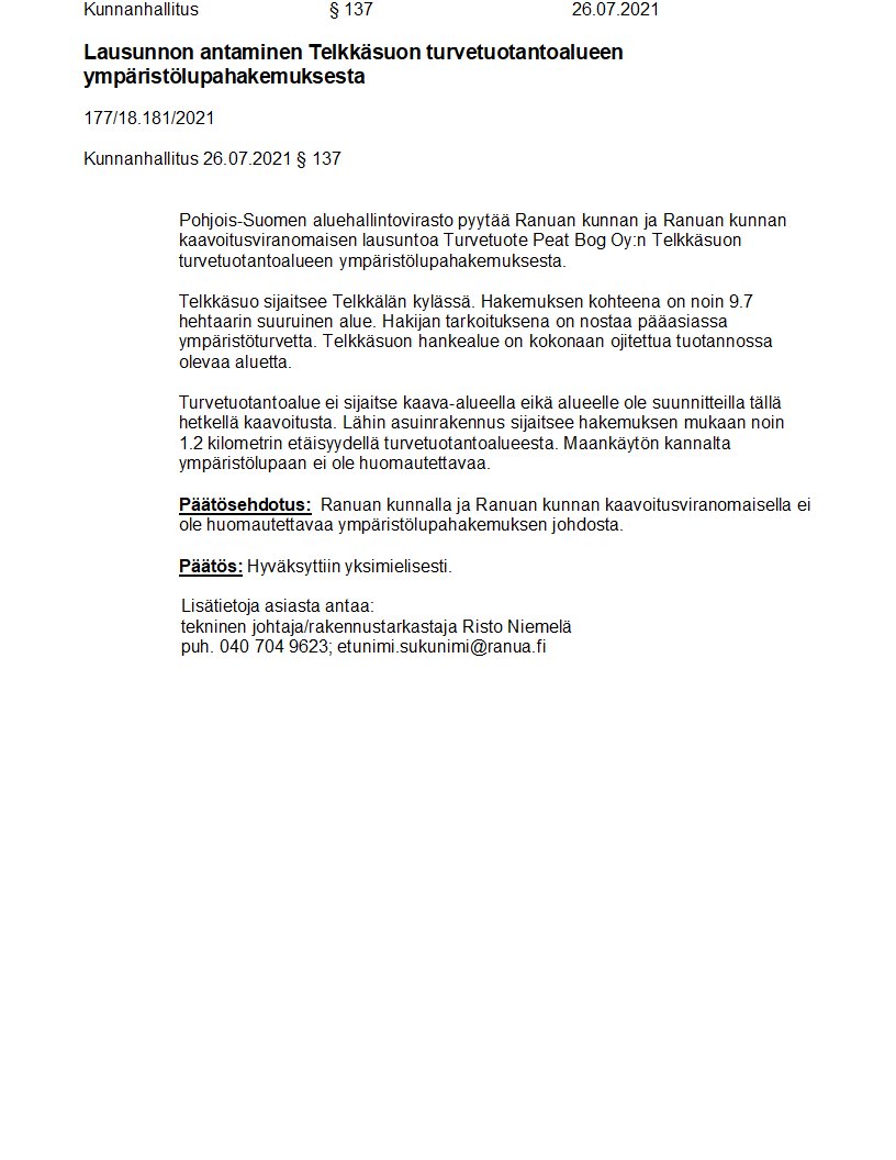 Pöytäkirja 26.07.2021/Pykälä 137