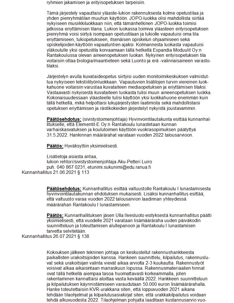 Pöytäkirja 26.07.2021/Pykälä 138