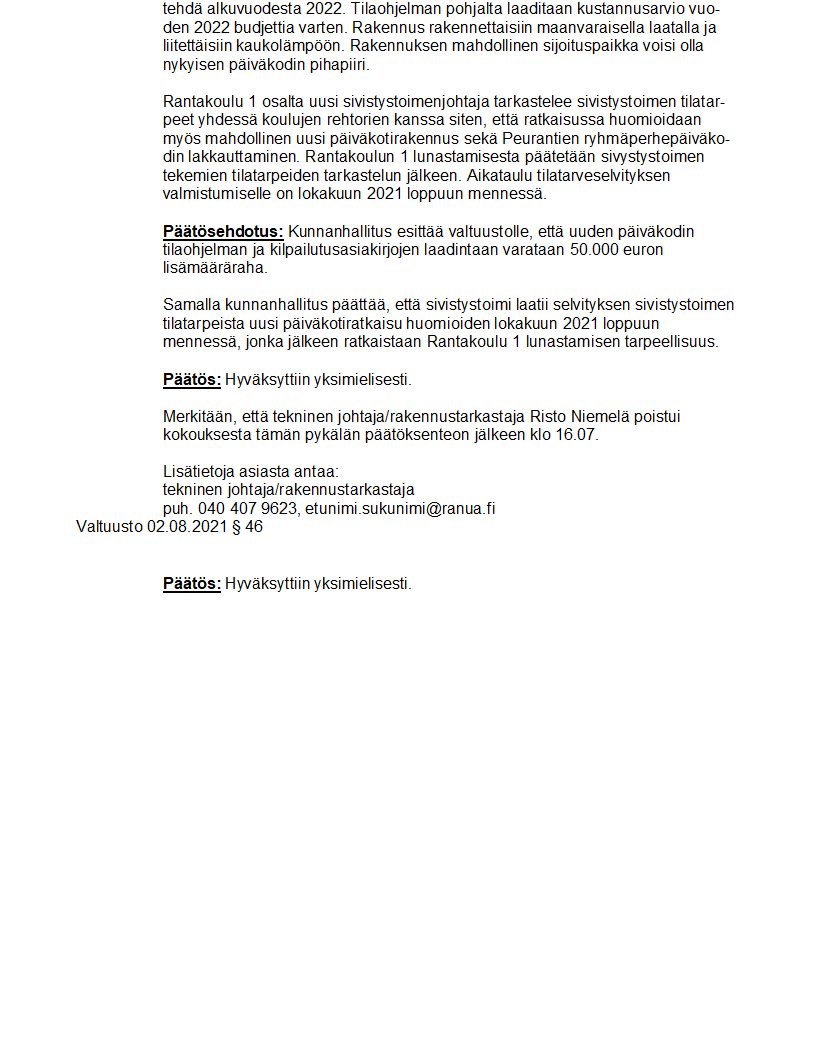 Pöytäkirja 02.08.2021/Pykälä 46