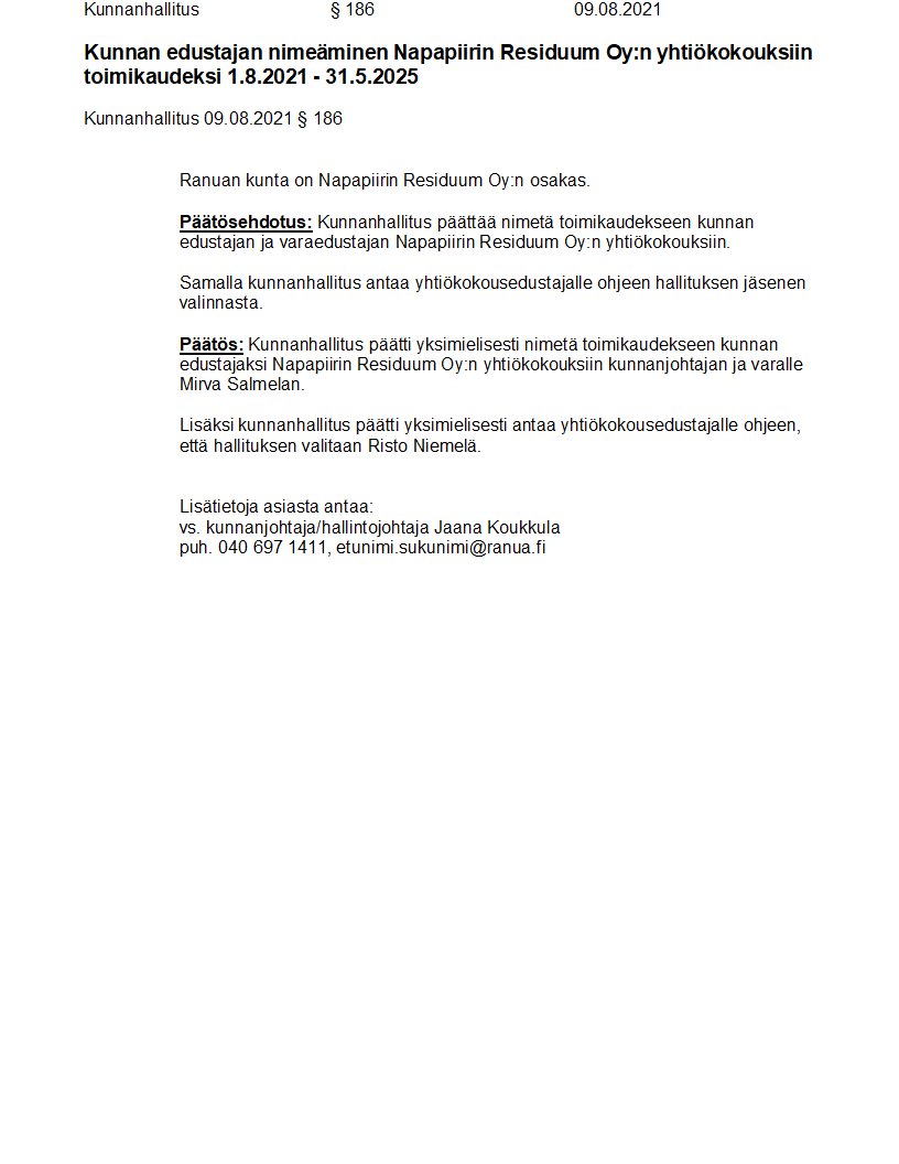 Pöytäkirja 09.08.2021/Pykälä 186