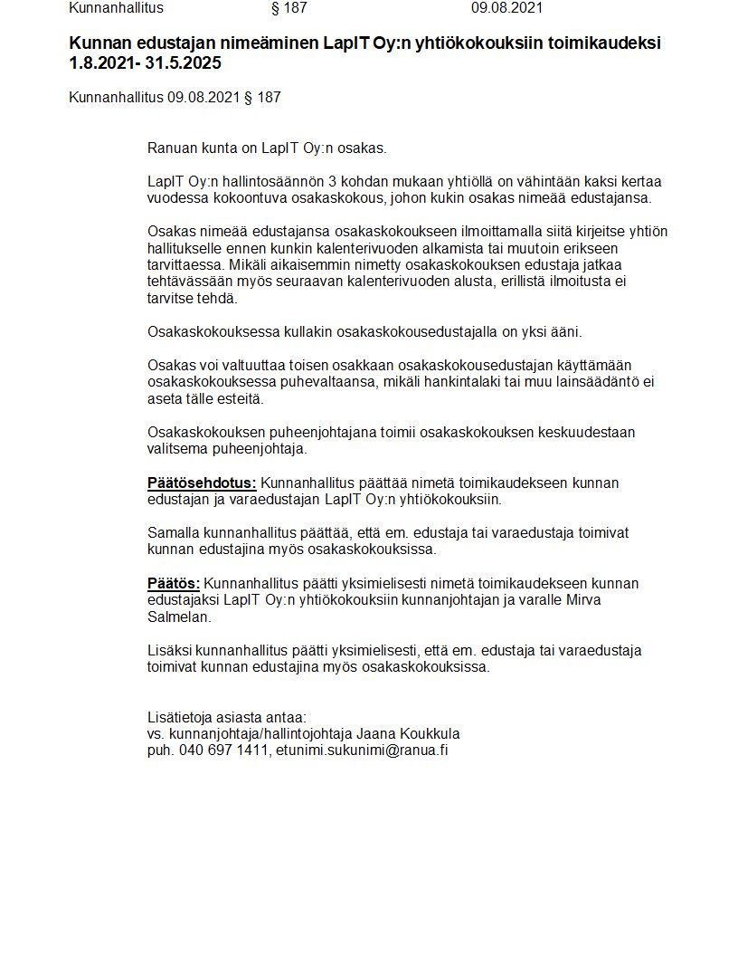 Pöytäkirja 09.08.2021/Pykälä 187