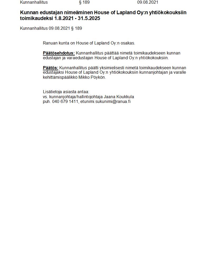 Pöytäkirja 09.08.2021/Pykälä 189