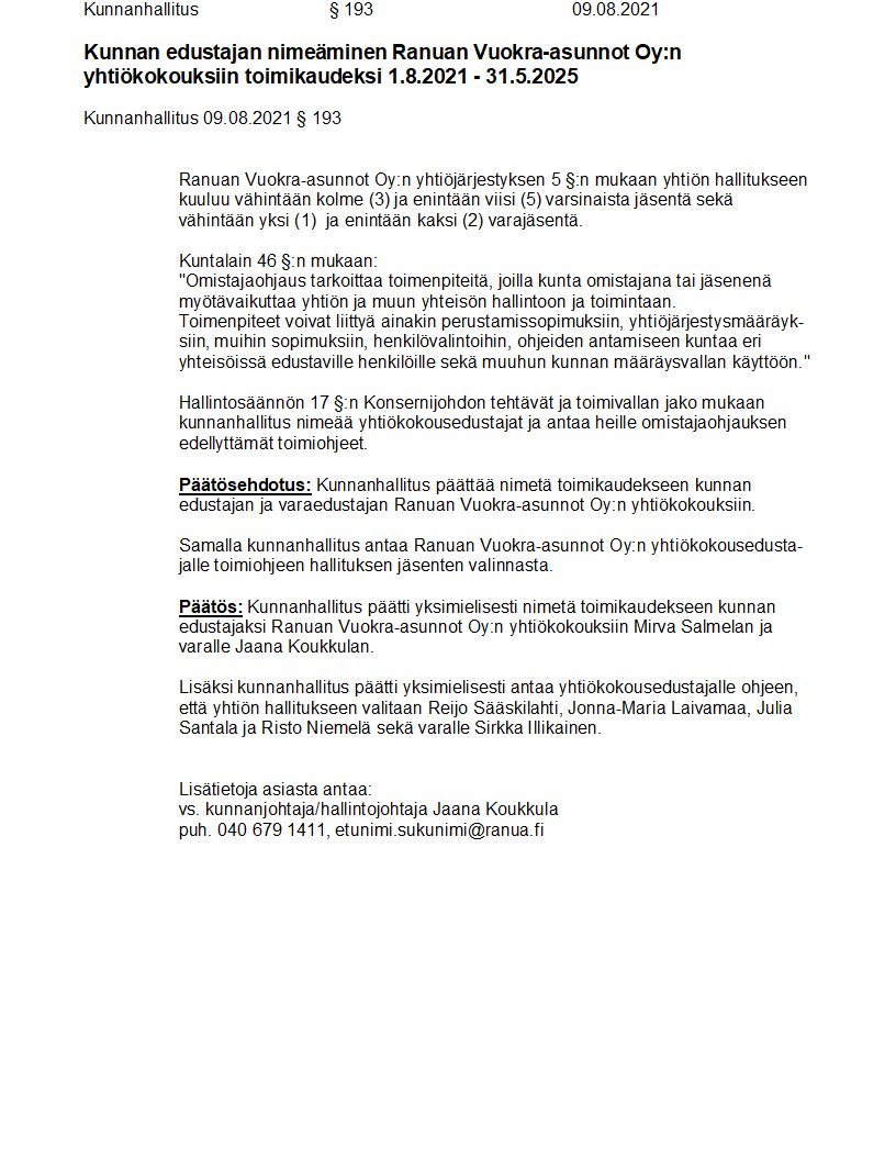 Pöytäkirja 09.08.2021/Pykälä 193