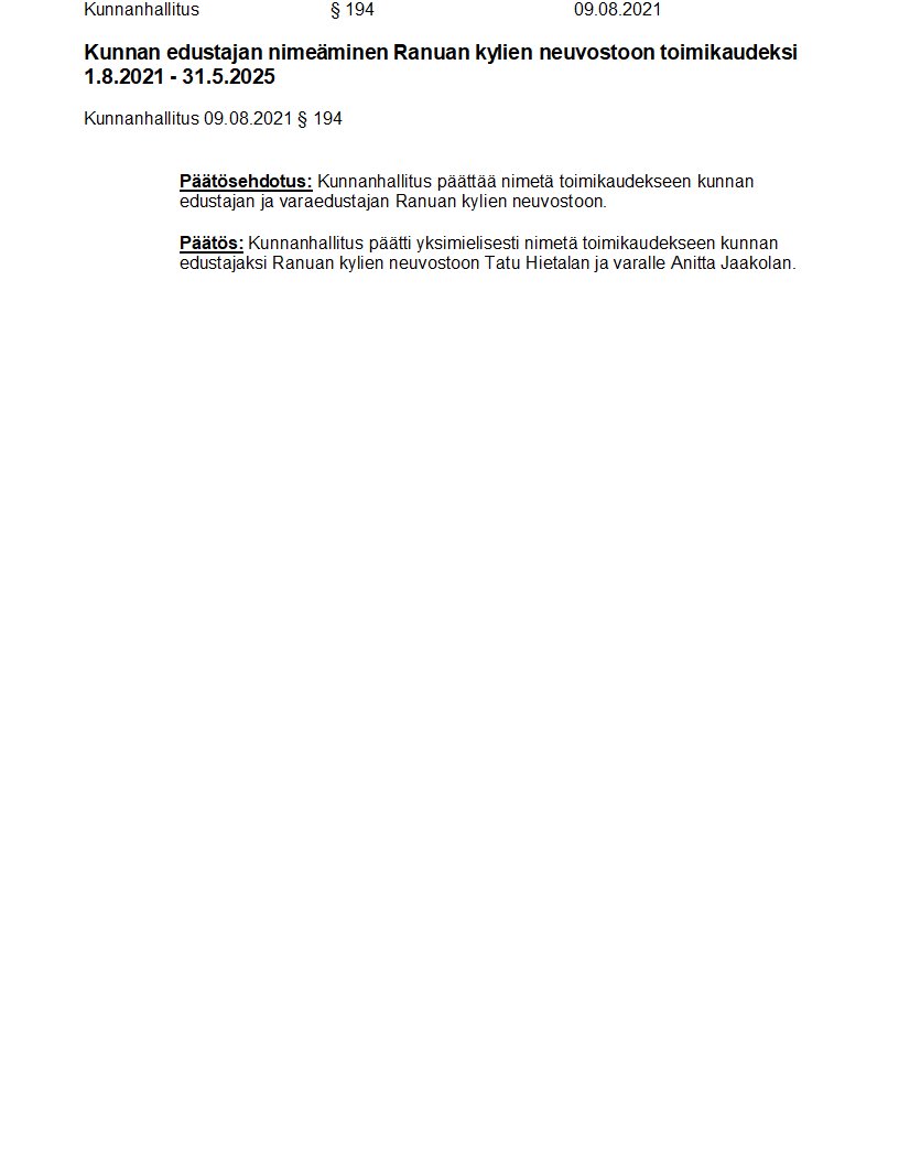 Pöytäkirja 09.08.2021/Pykälä 194