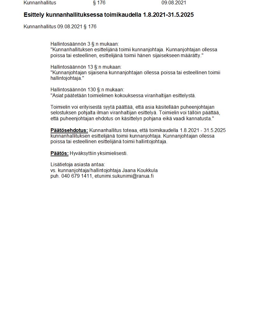 Pöytäkirja 09.08.2021/Pykälä 176