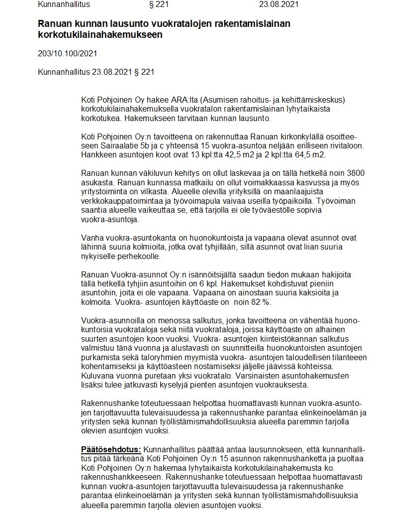 Pöytäkirja 23.08.2021/Pykälä 221