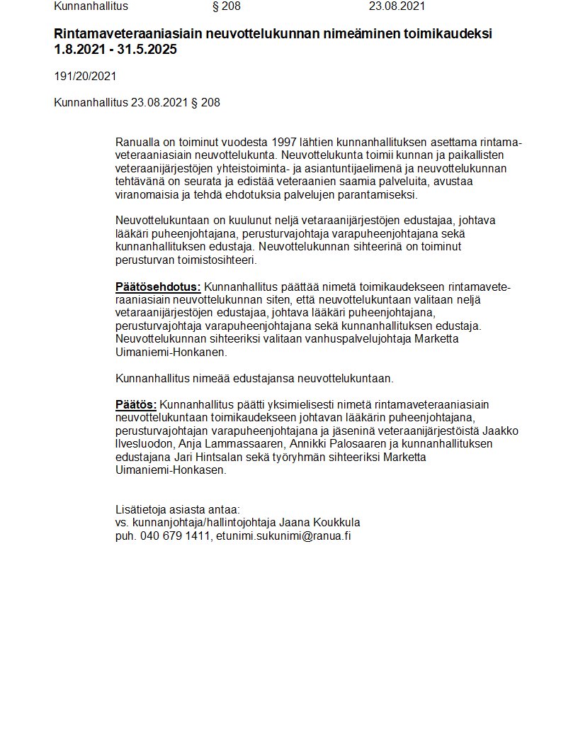 Pöytäkirja 23.08.2021/Pykälä 208