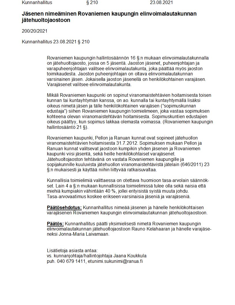 Pöytäkirja 23.08.2021/Pykälä 210