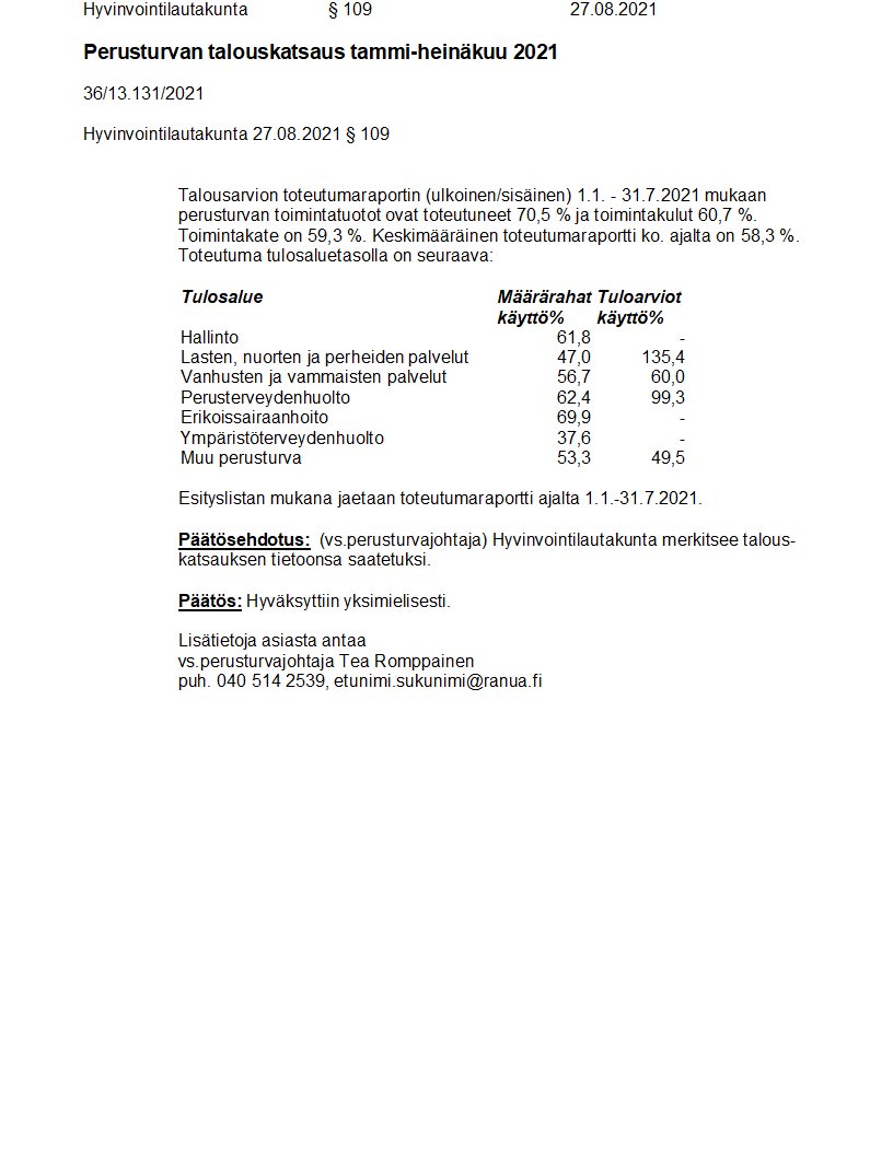 Pöytäkirja 27.08.2021/Pykälä 109