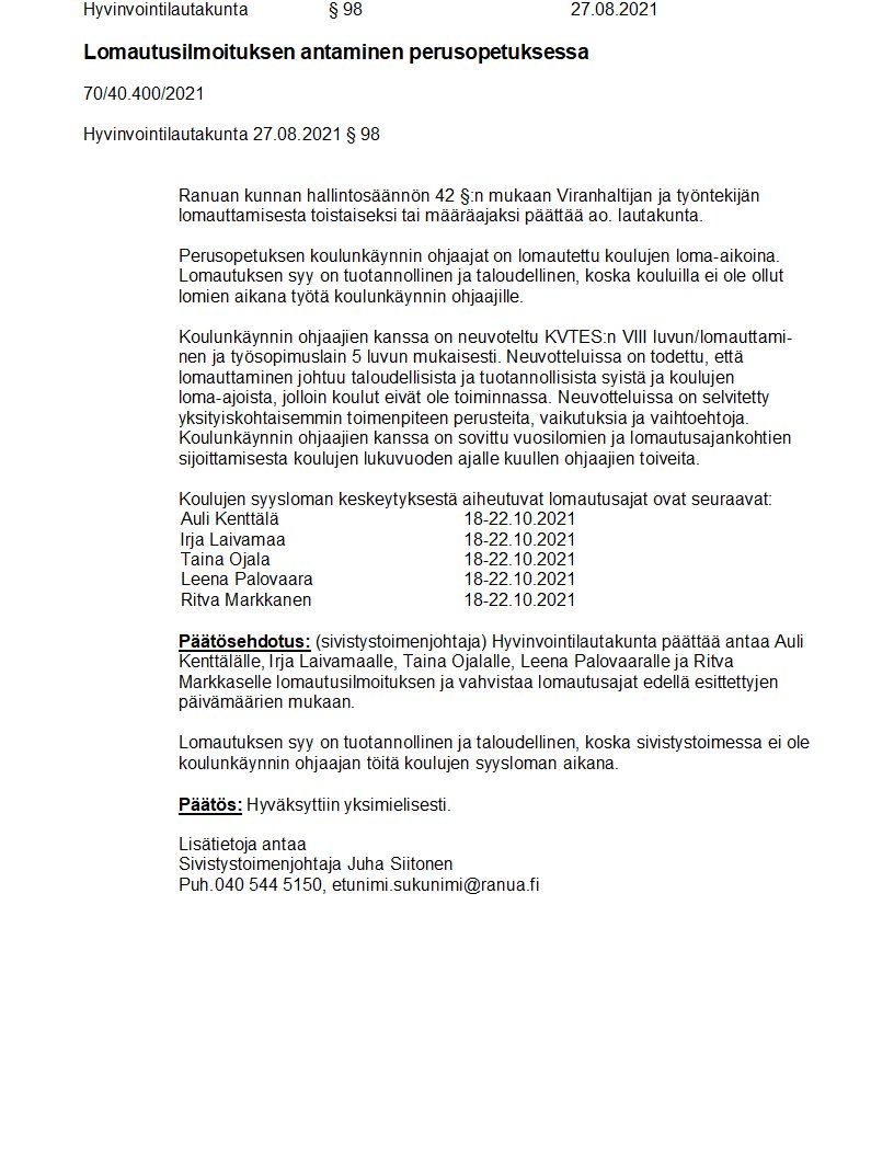Pöytäkirja 27.08.2021/Pykälä 98