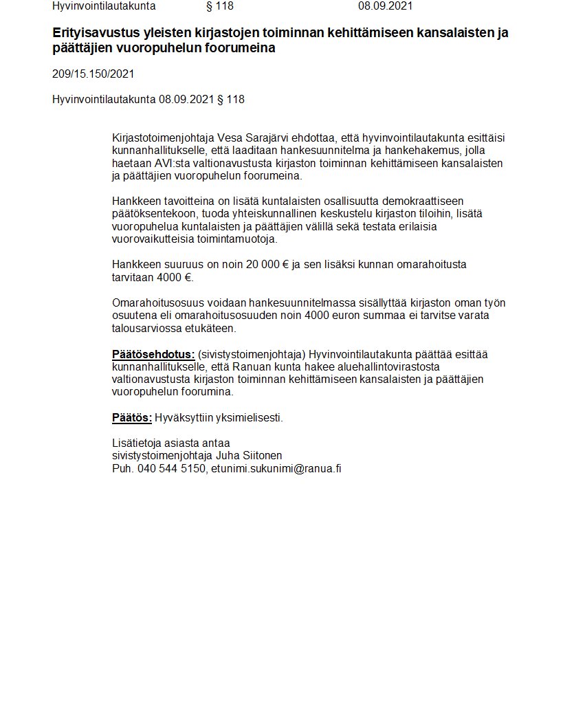 Pöytäkirja 08.09.2021/Pykälä 118