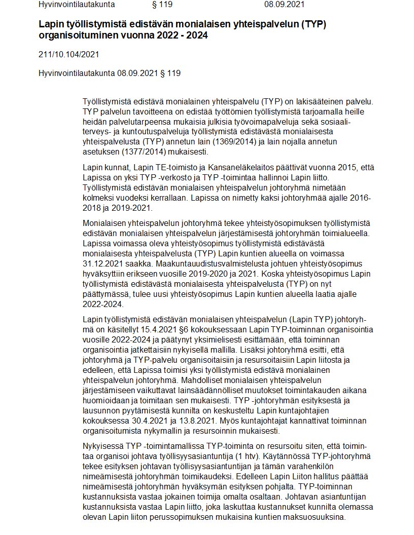 Pöytäkirja 08.09.2021/Pykälä 119