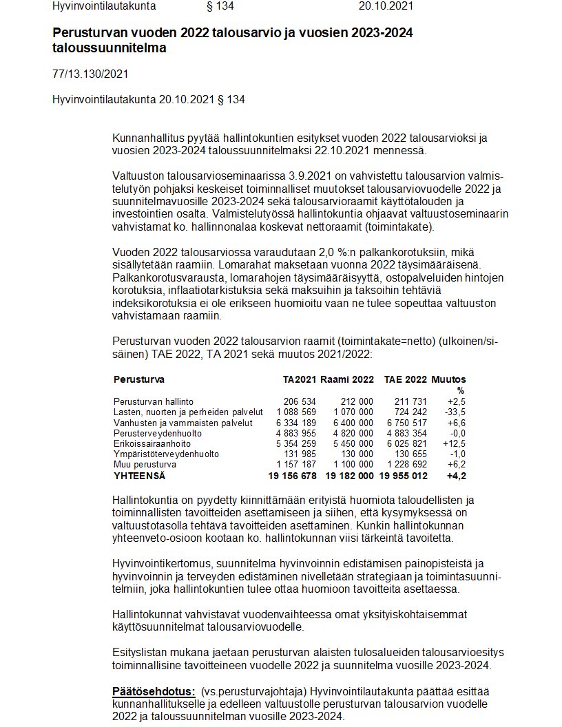 Pöytäkirja 20.10.2021/Pykälä 134