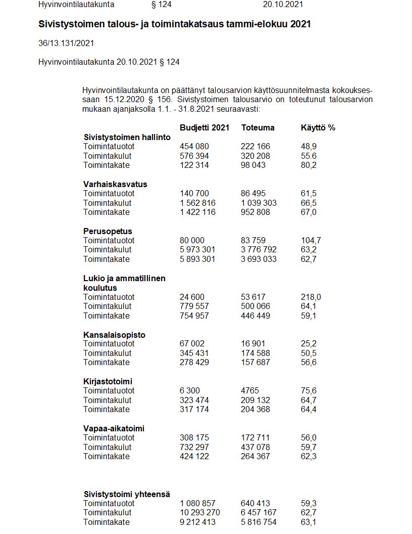 Pöytäkirja 20.10.2021/Pykälä 124