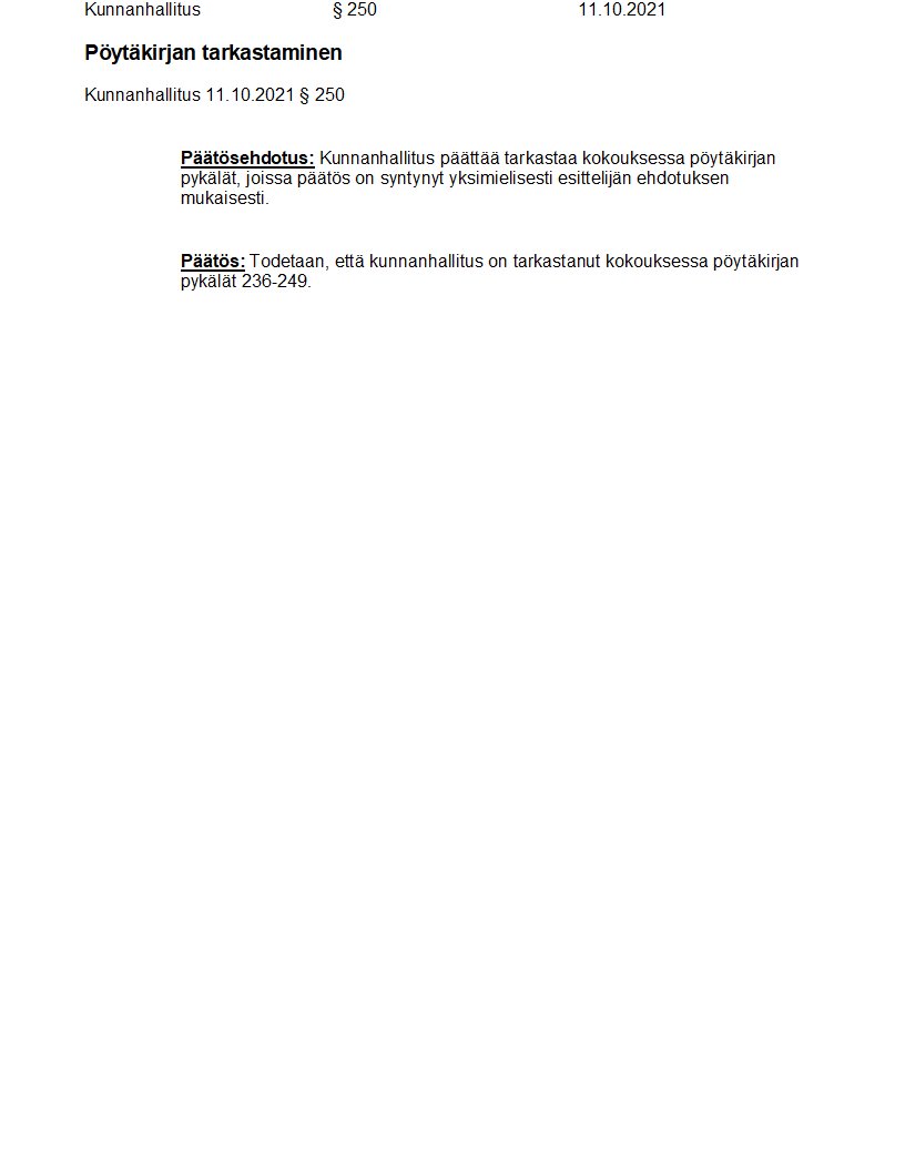 Pöytäkirja 11.10.2021/Pykälä 250
